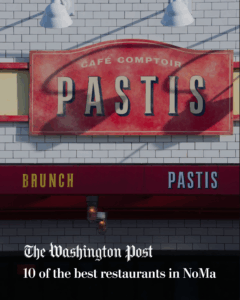 The beloved New York City restaurant Pastis is open in Washington, DC. Driven by two James Beard Award-winning restaurateurs, Pastis features elements similar to the original such as the restaurant’s classic curved zinc bar outfitted with signature subway tiles, vintage mirrors with handwritten daily specials, and a mosaic-tiled floor.